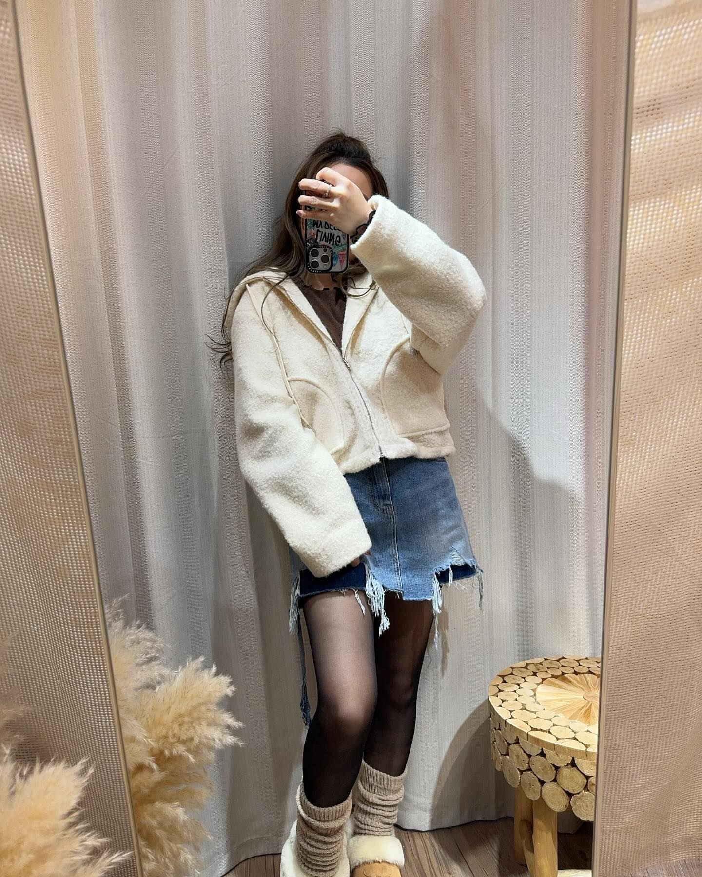 🔶圈圈毛連帽外套 ꫛꫀꪝ ~ —————————————- 🔸大小剛剛好,可以著厚衫係入面 圈圈毛質地好滑,內單里,唔係太厚 有衫袋,衫腳有束繩,可以收緊擋風🫶🏼 —————————————- 🔸•白色,黑色 —————————————- 🔸Size:拉埋拉鍊後尺寸 Chest 48吋 Waist 46吋 Length 22吋